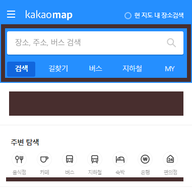 가장 먼저 '카카오맵' 홈페이지에 접속하도록 합니다. 다음 검색을 통해 쉽게 대표 사이트를 찾을 수 있습니다. 또는 url을 직접 입력한 후 이용할 수도 있습니다. (map.kakao.com)