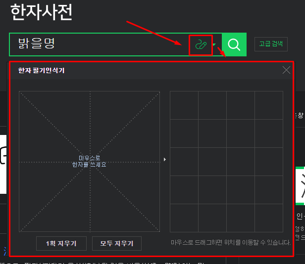 네이버 한자사전 필기인식 사용 방법