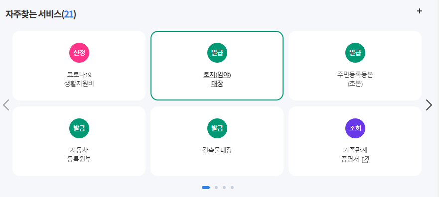 b. 정부 24 홈페이지에서 토지대장 기능 찾기