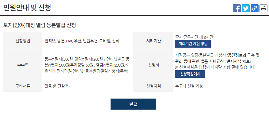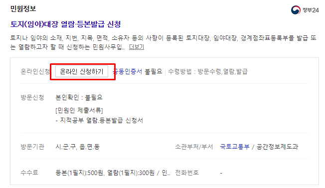 토지대장등본 인터넷 발급 방법
